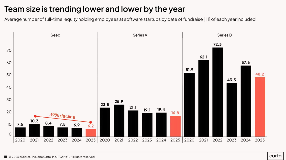 A conclusão é dura, mas necessária: para entregar o mesmo resultado de receita que habilita uma Série A, as empresas brasileiras operam com times duas a três vezes maiores. Isso escancara um problema de produtividade: estamos inchando estruturas muito mais cedo apenas para alcançar o mesmo nível de faturamento dos norte-americanos.
